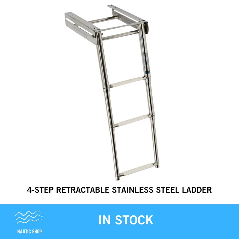4-step retractable stainless steel ladder.