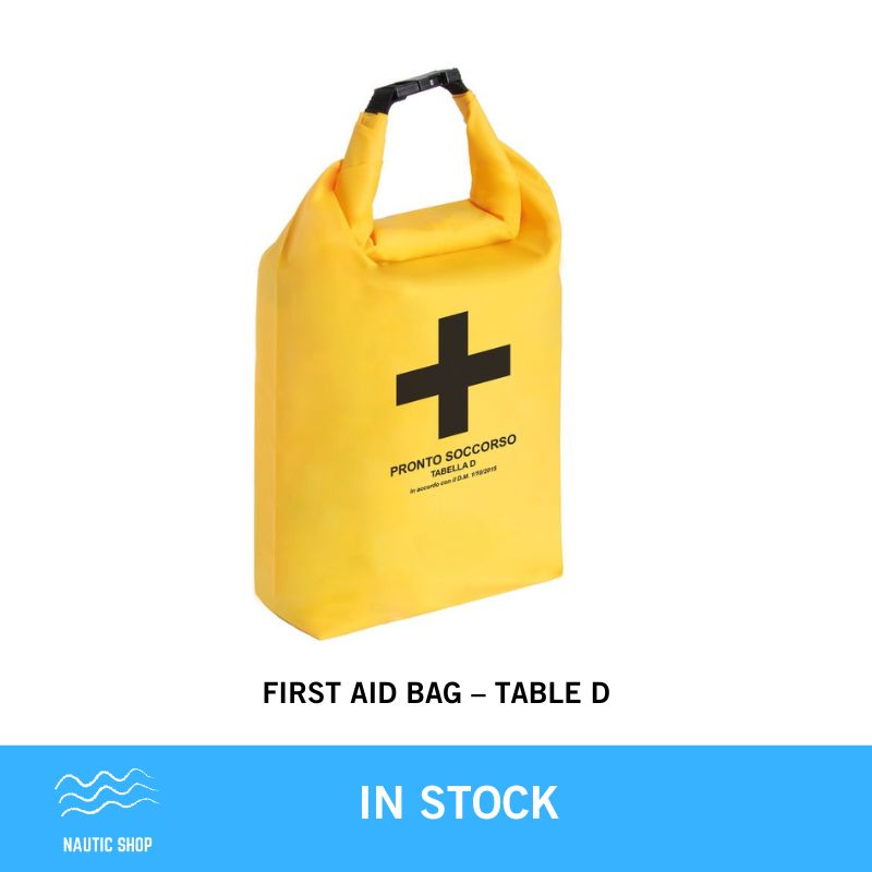 First aid bag Table D, prepared in accordance with D.M. 10/03/2022, effective from 10/05/2022.